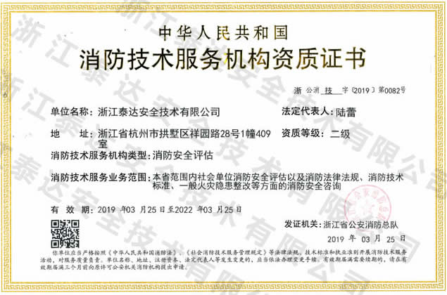 社會(huì)單位消防安全評(píng)估;消防法律法規(guī)、消防技術(shù)標(biāo)準(zhǔn)、一般火災(zāi)隱患整改等方面的消防安全咨詢。